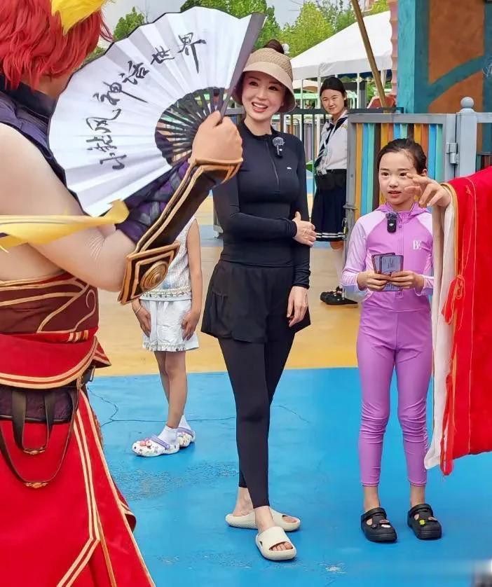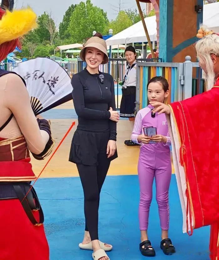 董璇现身郑州银基, 脸肿馒化腰粗赘肉多, 女儿眼大腿还长很抢镜
